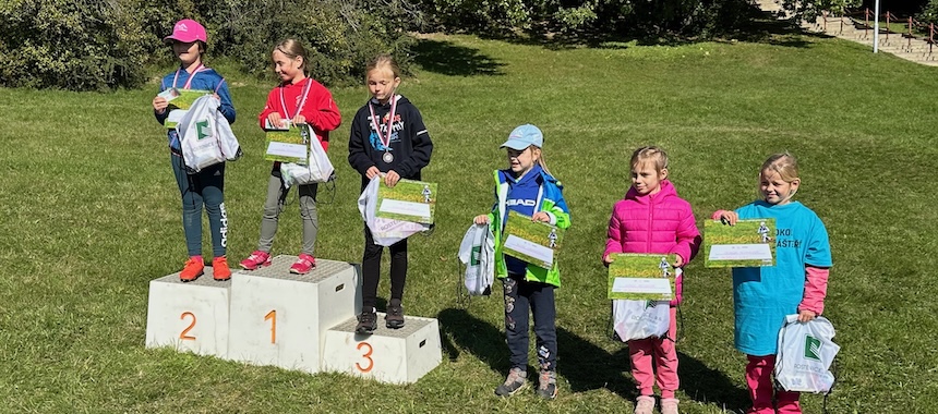 V kategorii myšáci kluci obsadil krásné 2.místo Maxík, v kategorii přípravka dívky byla na 6.místě vyhlášena Peťka Machotková a kategorii ženy open má již tradičně vítězku Báru. Musíme pochválit organizátory závodu, nejenže připravili pro vítěze opravdu originalní medaile, ale závod spojili s akcí "Dýňobraní" a také drakyádou, takže děti měly opravdu pestrý program.